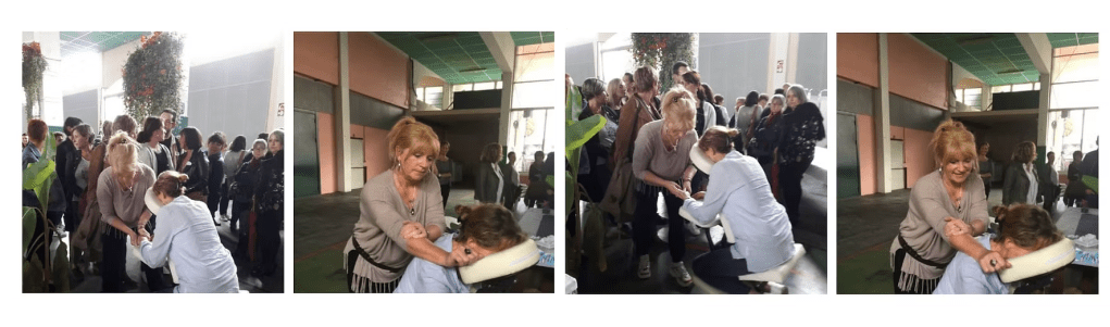 (*) Le terme de “massage” est utilisé ici pour une meilleure compréhension du grand public mais l’art d’acupression qu’est le Amma assis ne saurait en aucun cas remplacer un traitement médical et ne se substitue pas ni ne s’apparente à des soins de kinésithérapie.